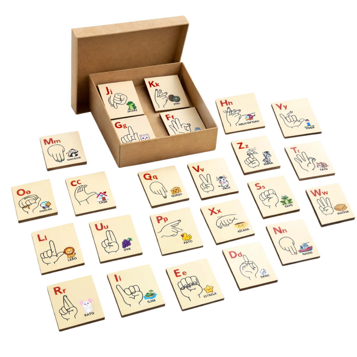 - Alfabeto que ensina as crianças a linguagem em libras (Linguagem Brasileira de Sinais).