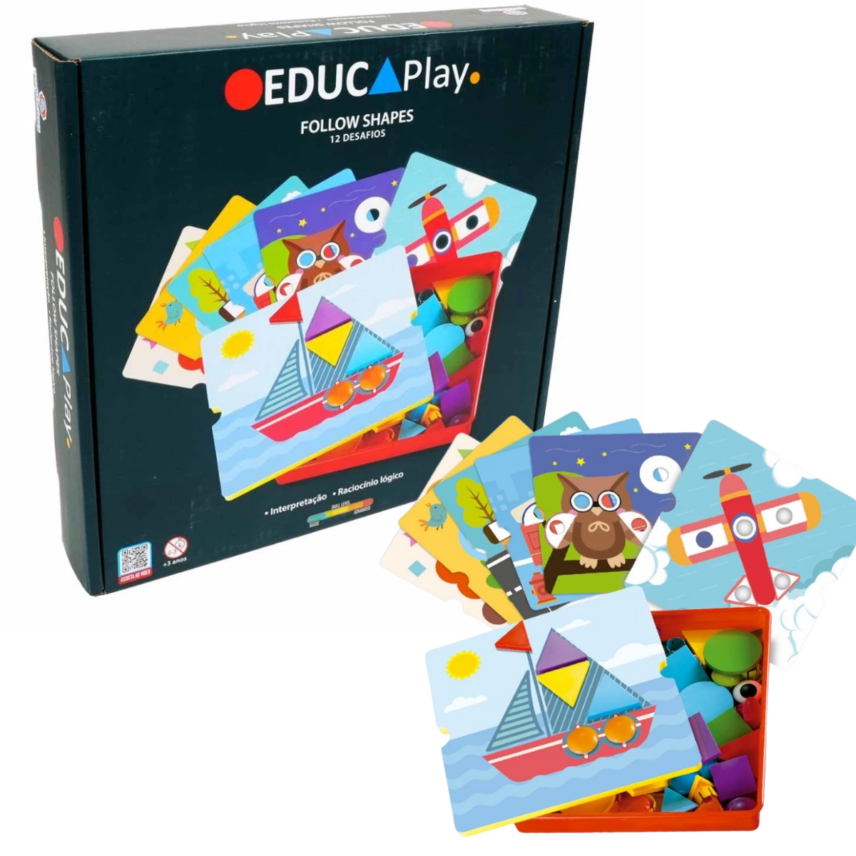 Follow Shapes Polibrinq – Jogo de Formas Geométricas com 12 Desafios Educativos