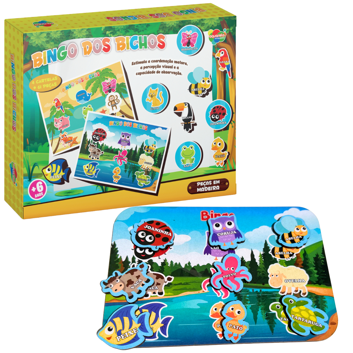 Cada peça é uma representação fiel de diferentes animais, permitindo que as crianças aprendam sobre a fauna de forma lúdica. Ao tentar preencher suas cartelas, as crianças não só exercitam o reconhecimento de formas e figuras, mas também desenvolvem a coordenação motora fina e a memória visual.